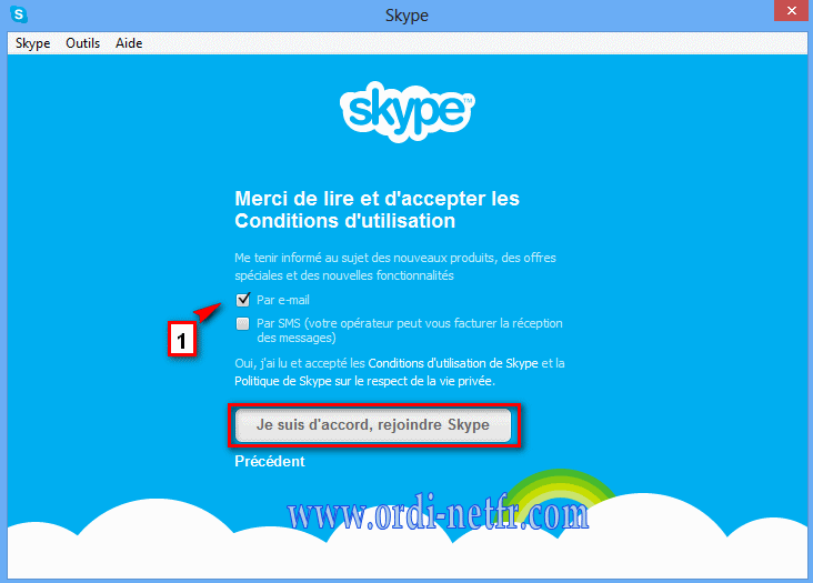 le cas où vous avez déjà un compte Skype, cliquer sur (1), cela
